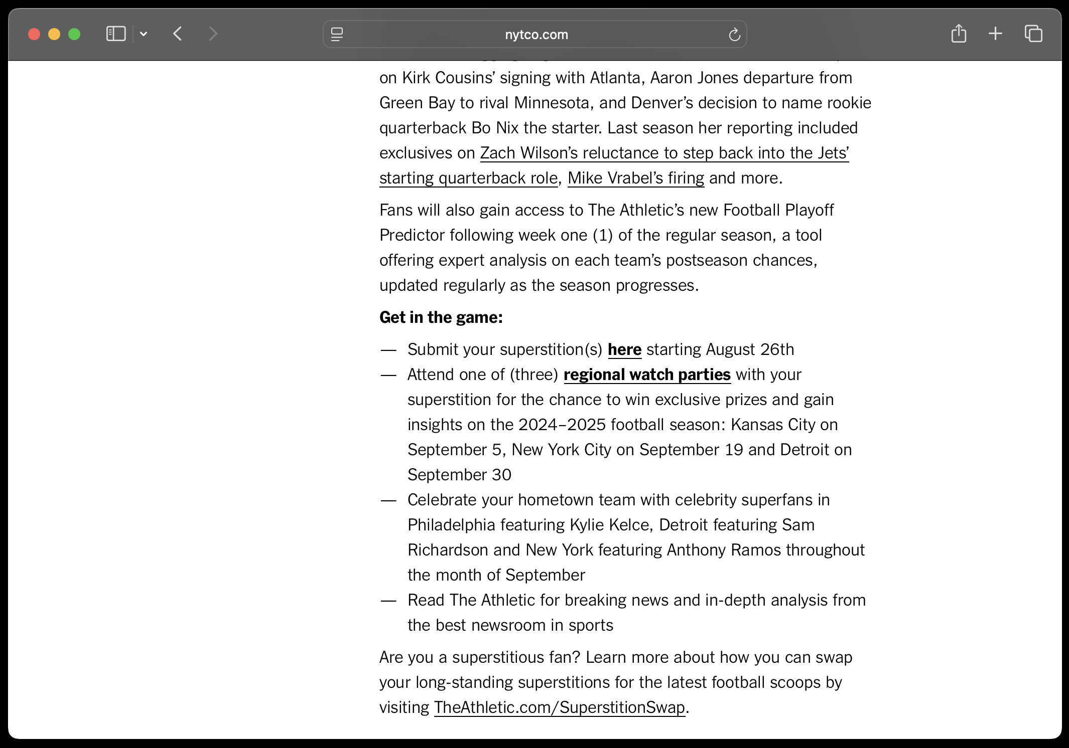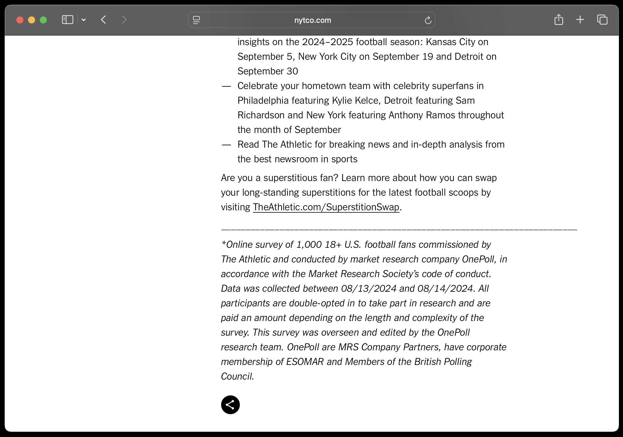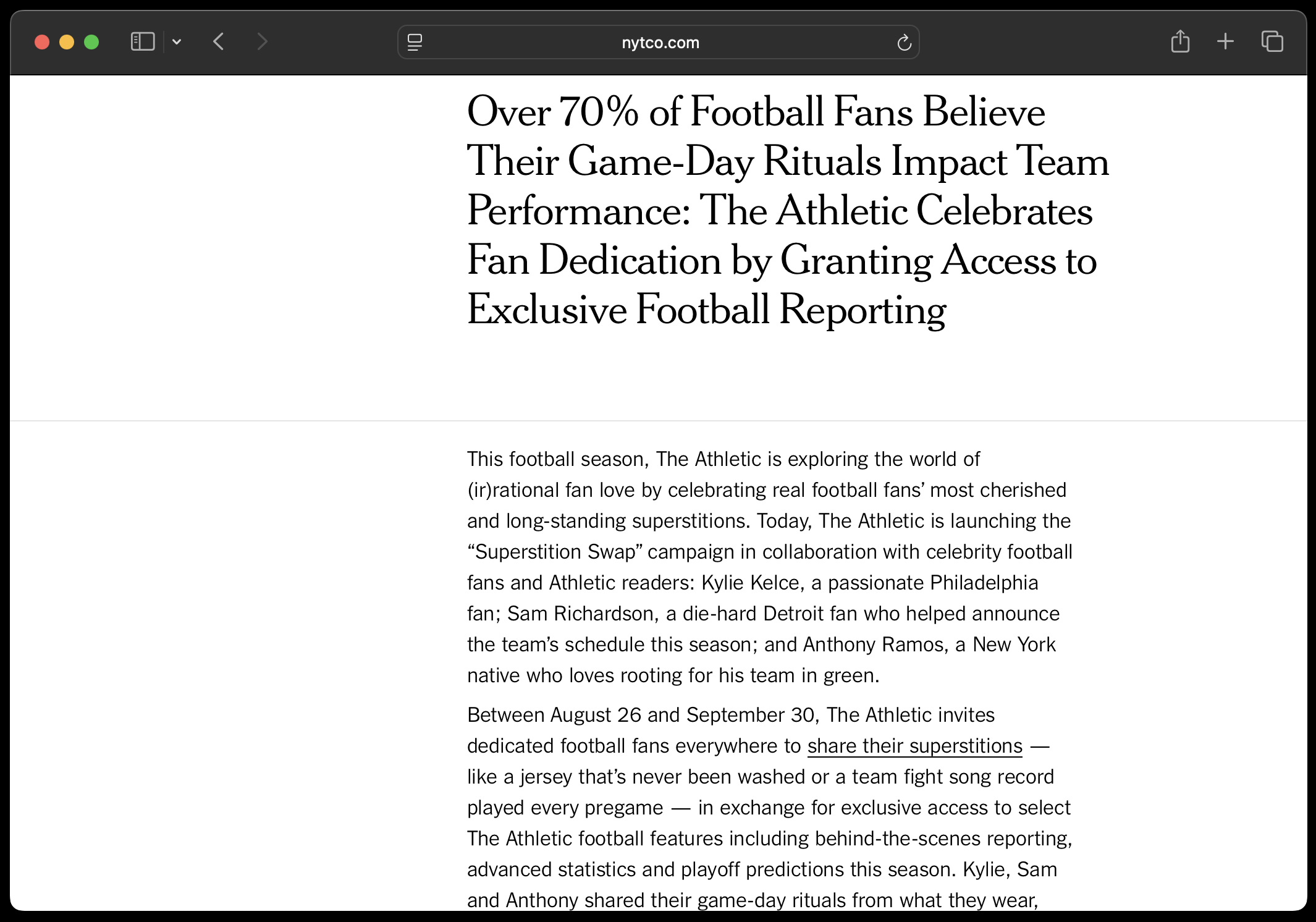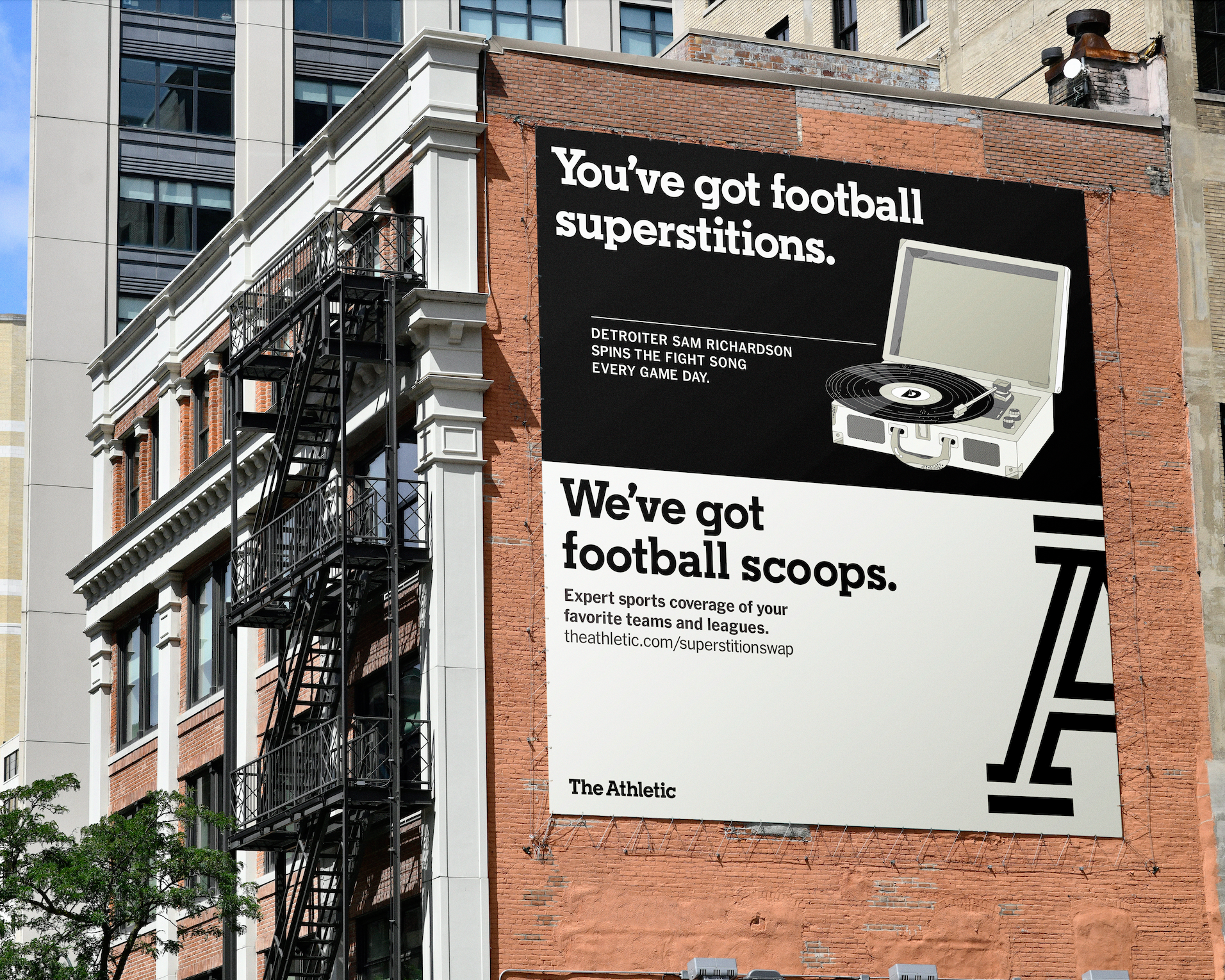The fine print: our recommended copy line was “Superstitions make it fun. The Athletic makes it smart.”