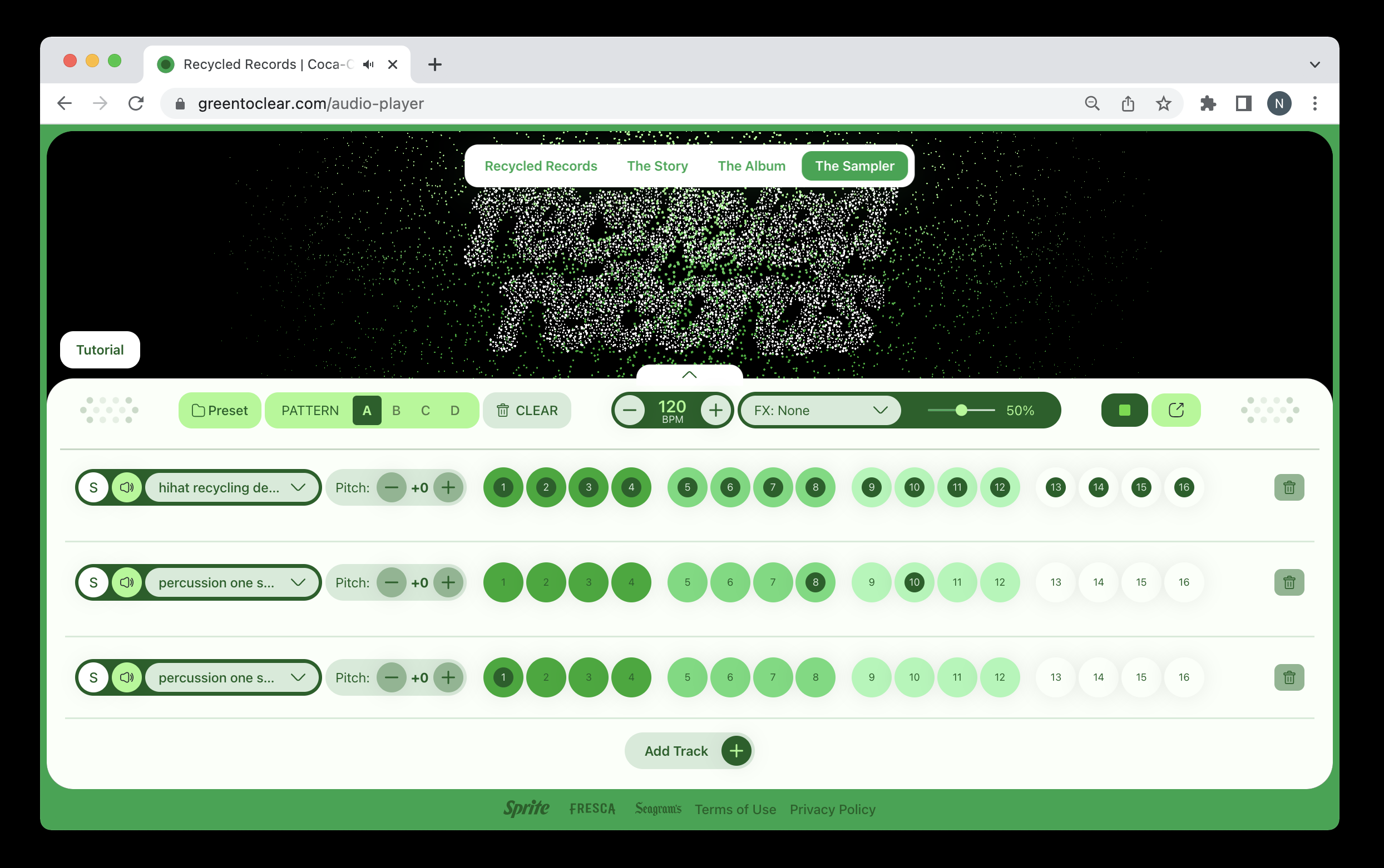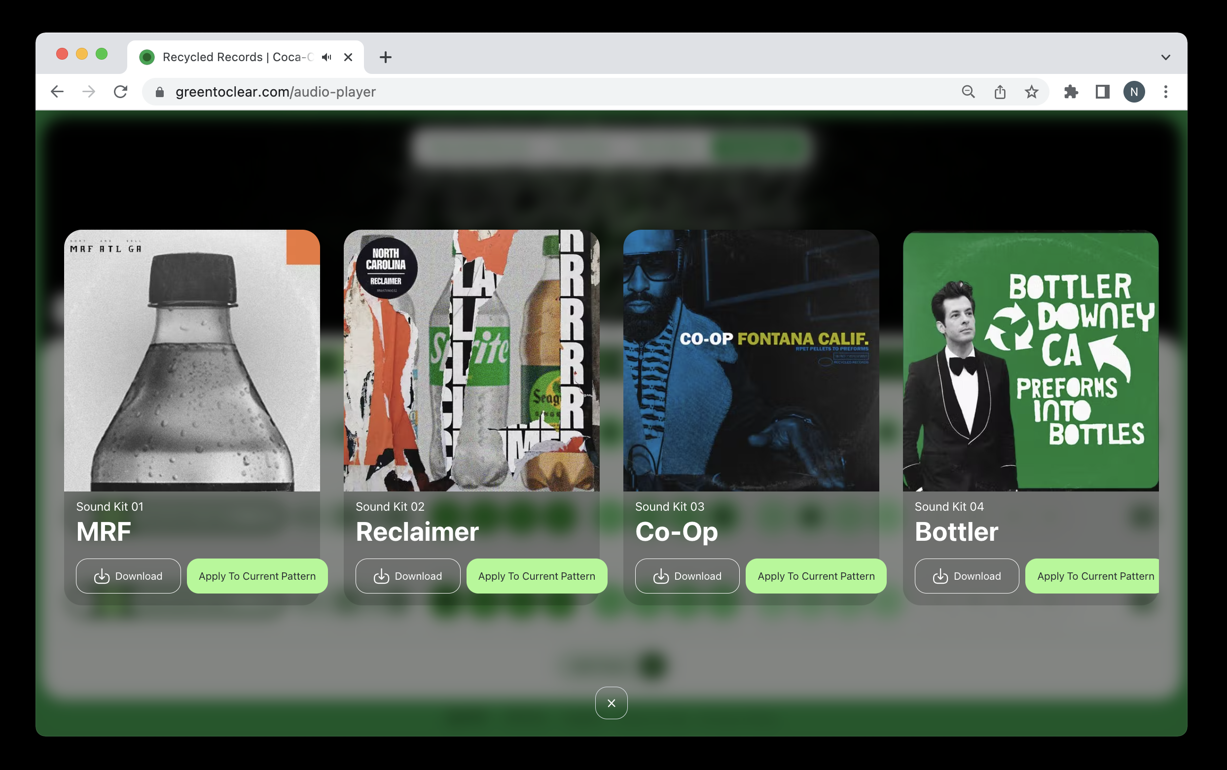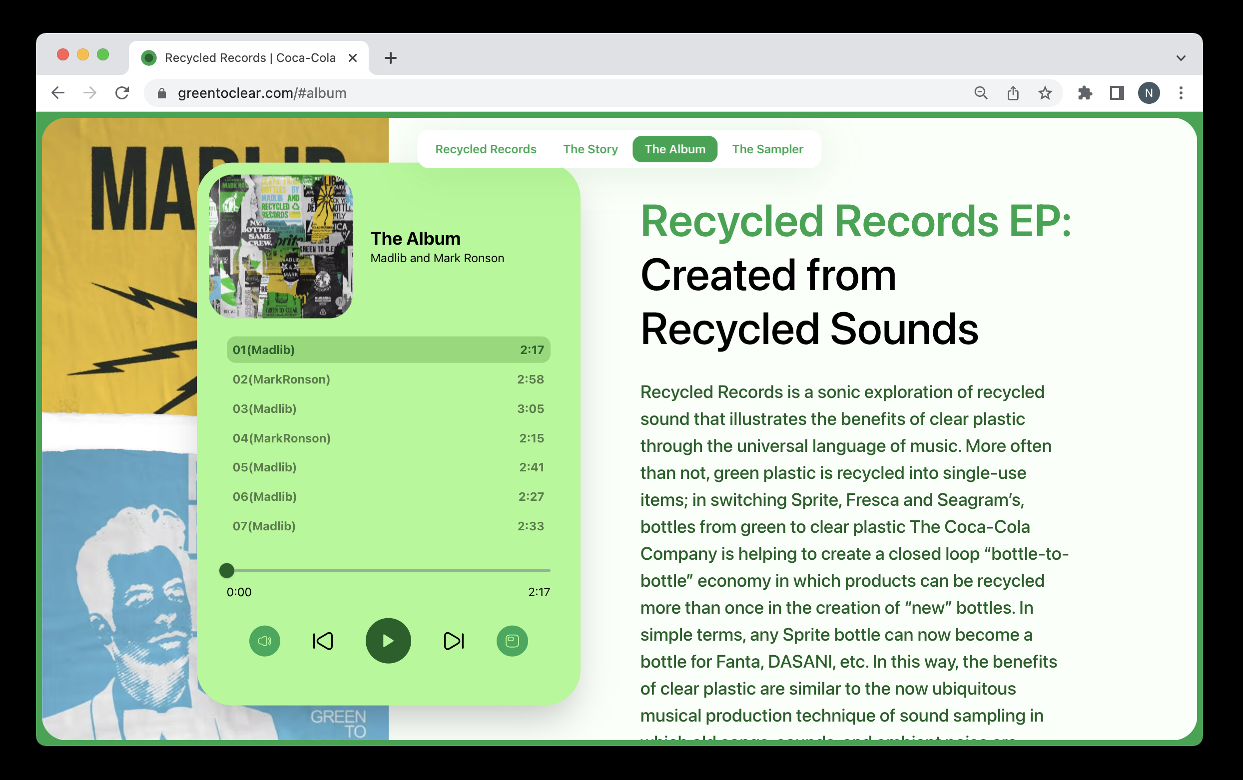 We partnered with Mark Ronson and Madlib to create the first ever EP made entirely out of the recycled sounds of recycling. We then released the beat backs to the public via a digitized 808 drum machine so fans could do some musical recycling of their own.